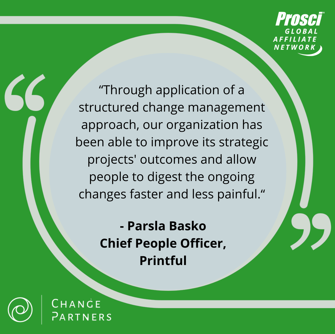 - To improve change leadership by the company’s midlevel managers to successfully support the merger of the Printful and Printify companies